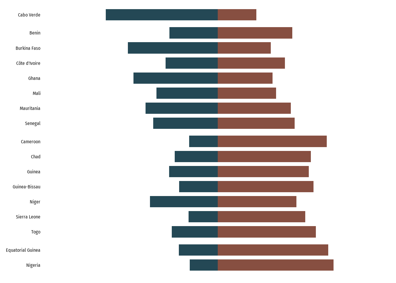 6 Côte d'Ivoire                    15021. 30 - 50
